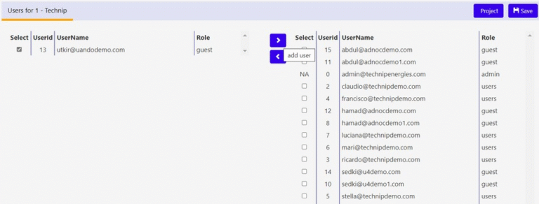 • After checking the ‘Select’ Box you can move the users between the two lists.