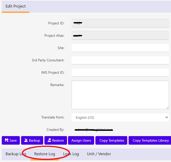 Every restore will be logged and visible to users under “Restore Log” screen, who can access the project.