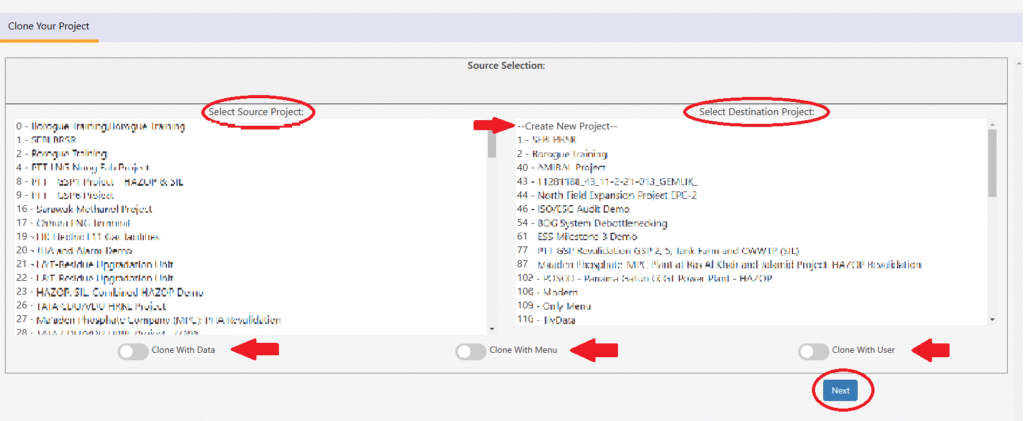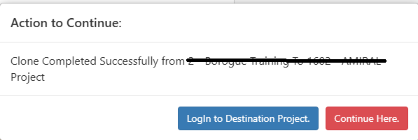 List of projects will be shown to select Source(which project going to be cloned) & Destination (to which project to be cloned).