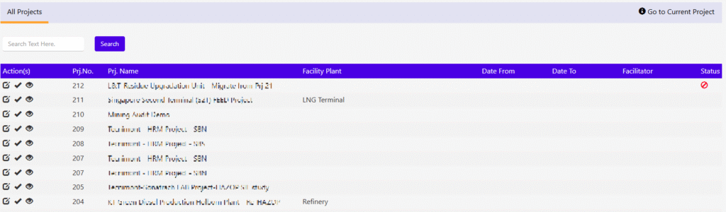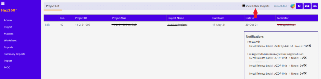 User can search the project details by clicking “View Other Projects” as shown in below screen.