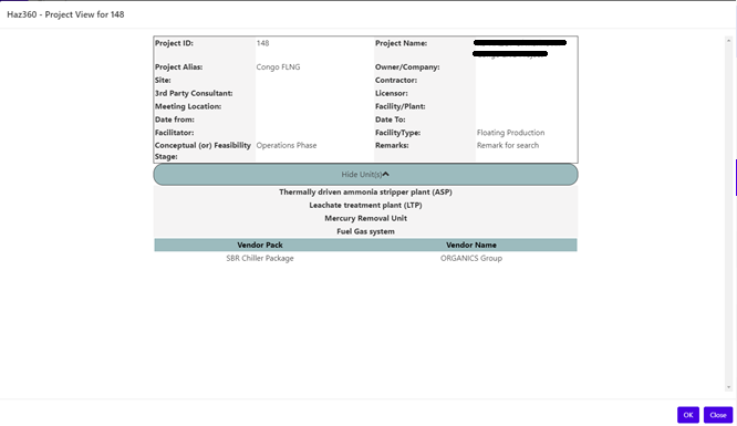 - User can click the “View” (eye) icon to view the summary of the project details like below.””