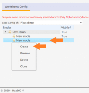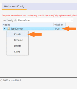 After worksheet is created right click on the worksheet name and click on ‘Create’ to create the nodes (columns) for the worksheet.