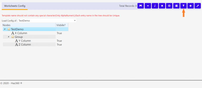 ‘Filter View’ will prompt a new page which can be used to check how the worksheet looks after making cofiguaration changes. It can also be used to input some data into worksheet to check the tree structure.