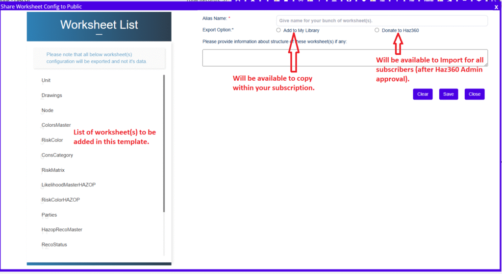 - Donate to Haz360 – This option will export the template to Haz360 library and it will be available to all the users/Subscriber(s) of HAz360 after approved by Haz360 Admin.