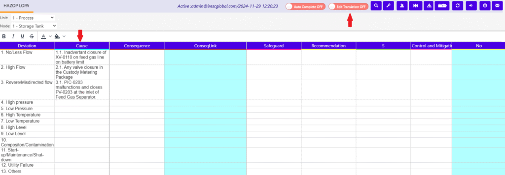 The worksheet that has translation configuration will have on/off switch as “Edit Translation OFF ” like image shown below in which “Cause” column has configured for Translation.